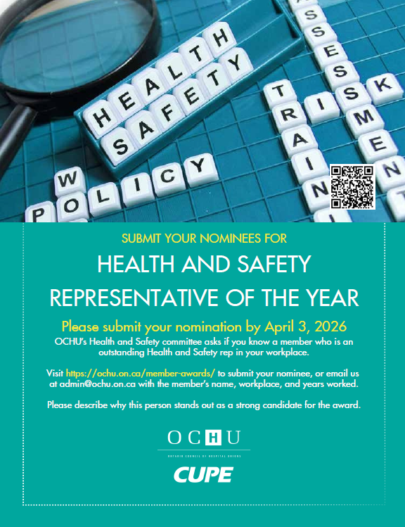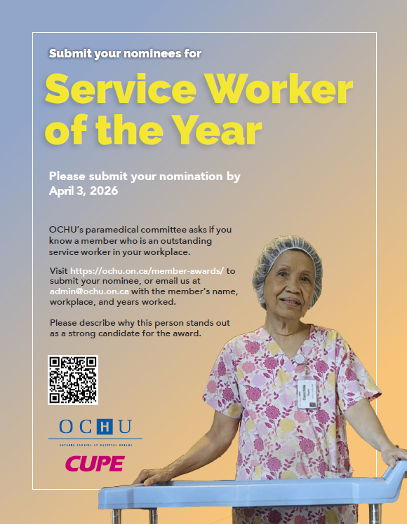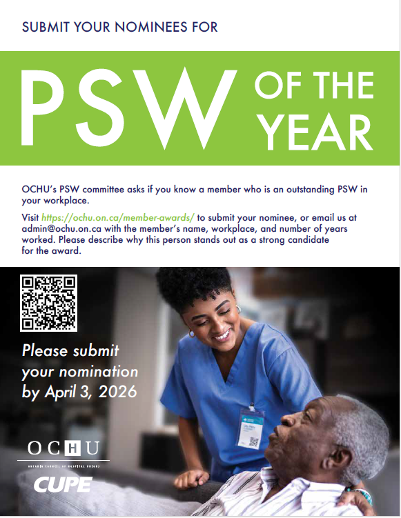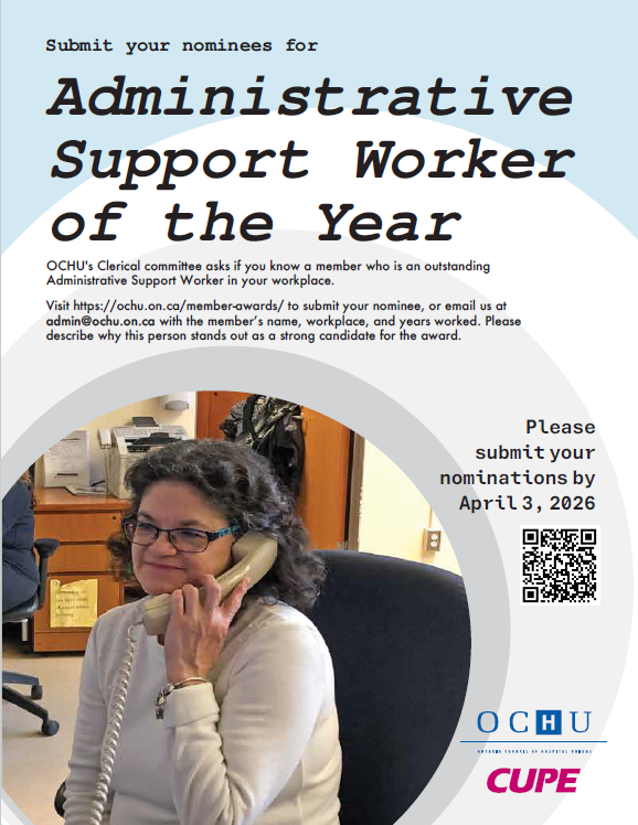 Nominations for the OCHU Member Awards are now open. OCHU/CUPE annually recognizes outstanding members through these awards.