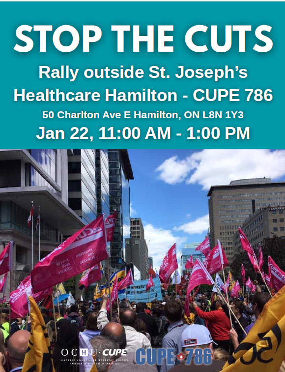 Together, our voices are stronger!  Please come to the rally outside of St Joseph's Healthcare on Charlton Avenue, January 22 from 11-1!
