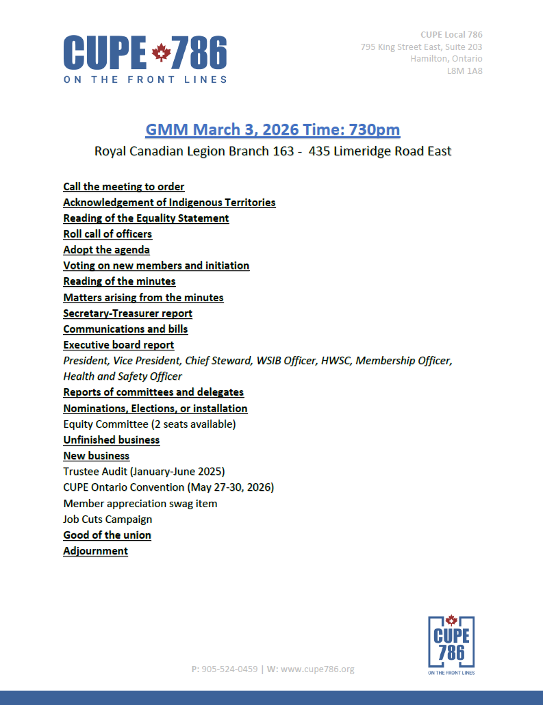 Join us for our next GMM, March 3, 2026 @730 p.m. at the Legion Branch 163 -435 Limeridge Road East.